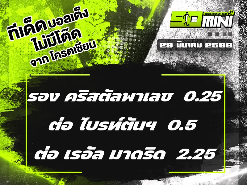 ทีเด็ดบอล วันนี้ ทีเด็ด บอลเต็ง วันที่ 29 มีนาคม 2568 คัด 3 คู่ จากลีกยอดนิยม มาให้เลือกเชียร์กันแบบชี้ชัดๆ
