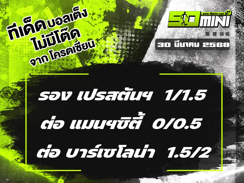 ทีเด็ดบอล วันนี้ ทีเด็ด บอลเต็ง วันที่ 30 มีนาคม 2568 คัด 3 คู่ คัดพิเศษมาให้เลือกเชียร์กันแบบชี้ชัดๆ