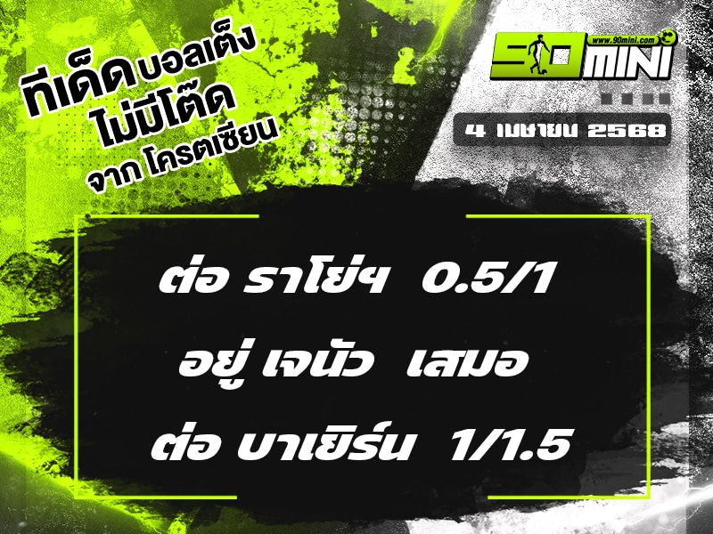 ทีเด็ดบอล วันนี้ ทีเด็ด บอลเต็ง วันที่ 4 เมษายน 2568 คัด 3 คู่ คัดพิเศษมาให้เลือกเชียร์กันแบบชี้ชัดๆ