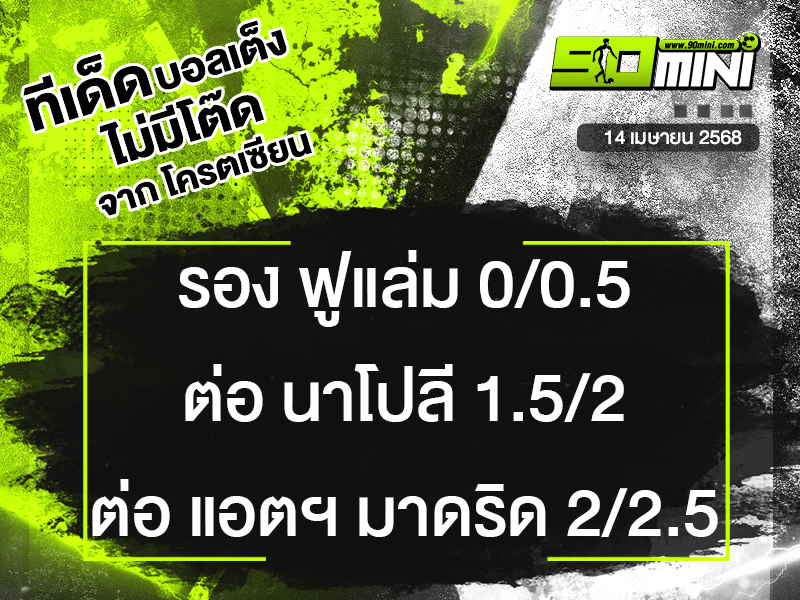90mini เป็นศูนย์รวมทีเด็ดฟุตบอลจากบ้าน ผล บอล zeanstep 7m สปอร์ตพูล baanpolball สยามกีฬา สยามสปอร์ต ดูทีเด็ดฟุตบอล แจกทีเด็ดบอลวันนี้ ดูผลบอลเมื่อคืนนี้ การแข่งขันเกมส์เซียนบอลสุดแม่น สถิติเข้าติดต่อกัน ดูผลบอลสด ผลบอลย้อนหลัง โปรแกรมฟุตบอลประจำวัน ตารางบอลวันนี้ ตารางบอลคืนนี้ ตารางบอลวันพรุ่งนี้ ท่านสามารถเช็คราคาบอลวันนี้ นอกจากบทวิเคราะห์บอล ทีเด็ดฟุตบอลแล้ว เรายังแจกลิงค์ดูบอลออนไลน์ สมาชิกสามารถติดตามตารางคะแนนฟุตบอลทุกลีกดังได้อีกด้วย เว็บไซต์ 90mini มุ่งนำเสนอเนื้อหาด้านฟุตบอลเชิงวิเคราะห์ โดยยึดหลักความถูกต้องของข้อมูล สถิติ และความน่าจะเป็นเท่านั้น เพื่อให้แฟนบอลได้ใช้ประกอบการติดตามการแข่งขันอย่างมีวิจารณญาณ ทางเว็บไซต์ขอยืนยันว่า ไม่สนับสนุนการพนันในทุกรูปแบบ และไม่มีส่วนเกี่ยวข้องกับข้อความหรือโฆษณาที่อาจปรากฏบนเว็บไซต์แต่อย่างใด ดังนั้น 90mini จะไม่รับผิดชอบในทุกกรณี ที่อาจเกิดขึ้นจากการใช้ข้อมูลภายในเว็บไซต์ ข้อมูลทั้งหมดที่เผยแพร่ ไม่ว่าจะเป็น บทวิเคราะห์บอล, แนวโน้มผลการแข่งขัน, หรือ สถิติต่าง ๆ มีจุดประสงค์เพื่อใช้ในการศึกษาและติดตามข่าวสารในวงการฟุตบอลเท่านั้น